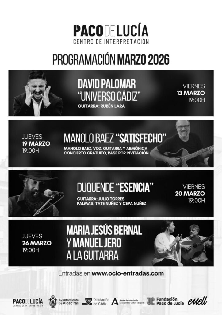 El Centro de Interpretación ‘Paco de Lucía’ de Algeciras ha presentado la programación cultural prevista para marzo de 2026. La teniente de alcalde delegada de Cultura, Pilar Pintor, dio a conocer el calendario de actividades que incluye cuatro espectáculos de guitarra y flamenco.