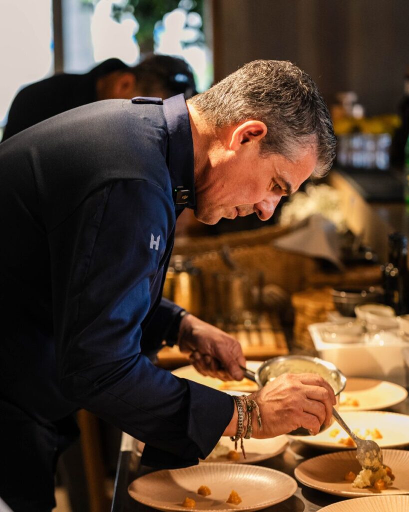 El menú degustación de seis pases sintetiza ese doble recorrido y constituye la propuesta más desarrollada de la temporada. Cada pase está concebido como un punto de encuentro entre ambas cocinas, sin que ninguna de las dos imponga su lógica sobre la otra.