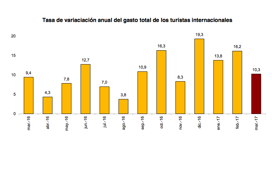 El gasto total de los turistas internacionales que visitan España en marzo aumenta un 10, 3 % respecto a l mismo mes de 201 6