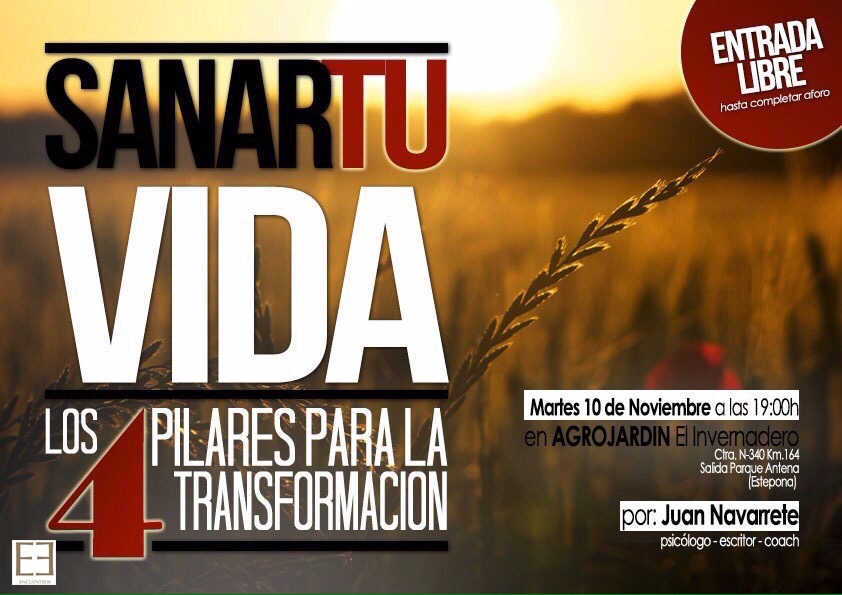 El próximo martes 10 de noviembre el restaurante El Invernadero acoge la charla “Sanar tu vida, los cuatro pilares para la transformación” impartida por el psicólogo, escritor y coach Juan Navarrete.