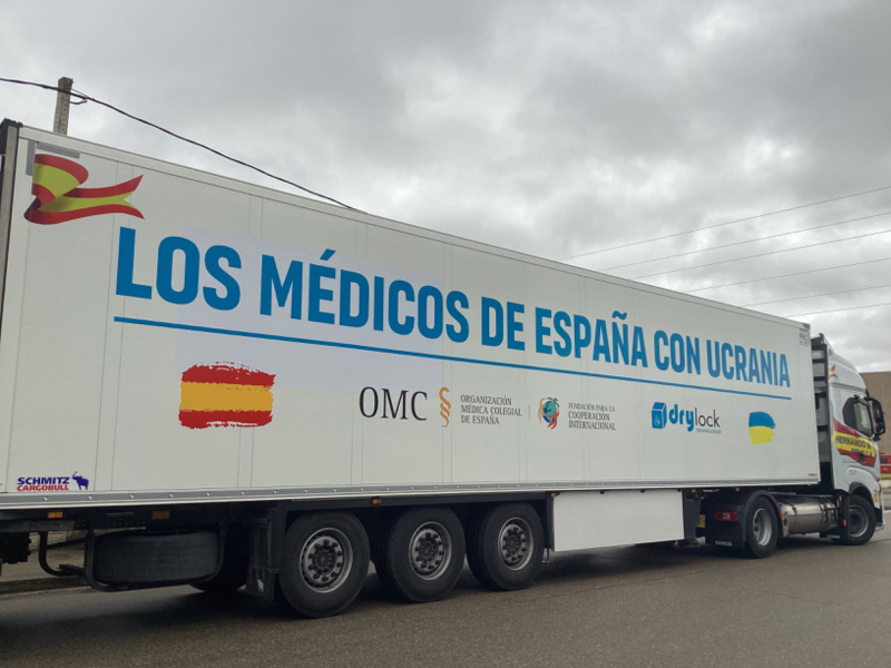 Un tráiler cargado de solidaridad de la profesión médica española e insumos sanitarios sale hoy desde Segovia hasta la frontera entre Polonia y Ucrania a iniciativa de la Fundación para la Cooperación Internacional de la Organización Médica Colegial (FCOMCI).