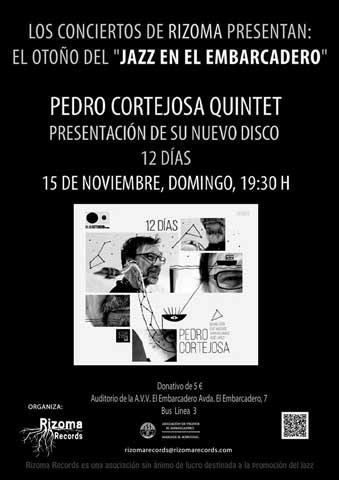 El próximo domingo día 15 finaliza la temporada de otoño “JAZZ EN EL EMBARCADERO” con un lujazo de concierto. Justo antes de que se vaya a Nueva York, Pedro Cortejosa Quintet, a presentar su nuevo disco “12 días”.
