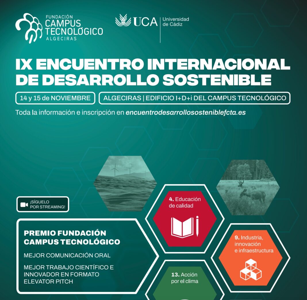 La Fundación Campus Tecnológico de Algeciras y la Universidad de Cádiz, a través del vicerrectorado del Campus Bahía de Algeciras, organizan hoy y mañana el IX Encuentro Internacional de Desarrollo Sostenible en Algeciras. Un evento que pretende servir de espacio de reflexión y análisis con la intención de avanzar hacia los objetivos de la Agenda 2030, promoviendo el Desarrollo Sostenible y la Economía Circular a través del pensamiento holístico, la innovación y la internacionalización. Se podrá asistir de manera presencial o seguir vía streaming.