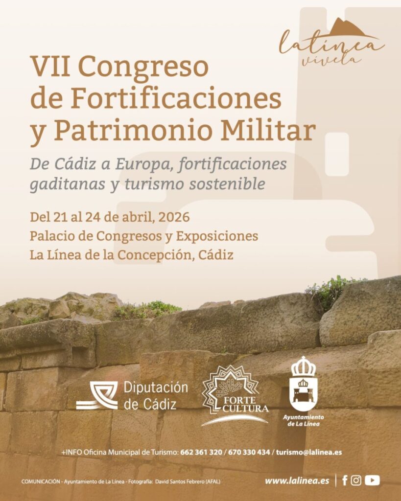 El Palacio de Congresos de La Línea de la Concepción acoge del 21 al 24 de abril el VII Congreso de Fortificaciones y Patrimonio Militar, bajo el título ‘De Cádiz a Europa, fortificaciones gaditanas y turismo sostenible’, organizado por la red europea Forte Cultura con el patrocinio del Ayuntamiento de La Línea de la Concepción y la Diputación de Cádiz. El encuentro cuenta con 45 asistentes confirmados procedentes de diez países: Alemania, Austria, Suiza, Grecia, Italia, República Checa, Portugal, Países Bajos, Ucrania y España.