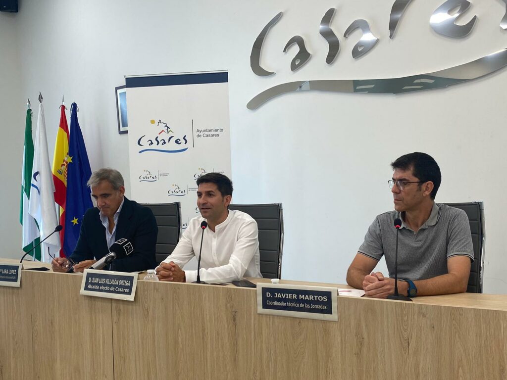 La presentación oficial de esta actividad ha tenido lugar esta mañana en el citado municipio y ha contado con la participación de Juan Luis Villalón Ortega, alcalde de Casares; Antonio María Lara, director académico de Empresa y Proyección Internacional de la FGUMA, y Javier Martos, coordinador técnico de las Jornadas.