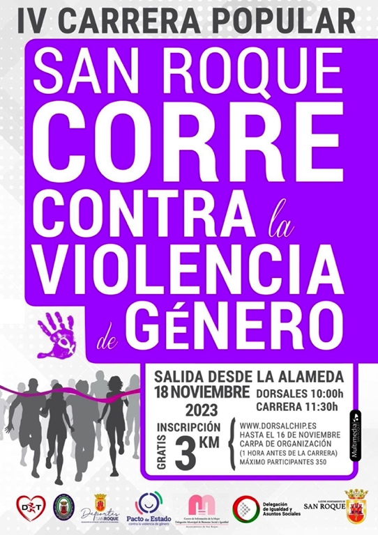 El Centro de Información a la Mujer (CIM) coordina los actos para conmemorar el 25 N, Día contra la Violencia de Género. La IV Carrera “San Roque corre contra la Violencia de Género” es una de las iniciativas programadas por este departamento, dependiente de la Delegación de Igualdad y Asuntos Sociales, que dirige la concejal Eva Gil, y en la organización participa también la Delegación de Deportes, con la teniente Mónica Córdoba al frente. También colaboran Policía Local y Protección Civil, así como las empresas municipales Multimedia y Emadesa.