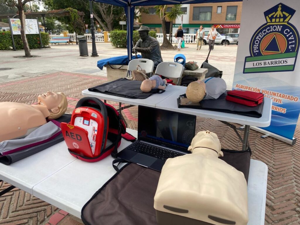 Voluntarios de Protección Civil de Los Barrios han enseñado este jueves a los vecinos de Los Barrios técnicas de reanimación cardiopulmonar con motivo del Día Internacional de la Reanimación Cardiopulmonar. La agrupación barreña ha instalado una carpa en el Paseo de la Constitución que ha visitado la delegada de Protección Civil, Geli Ferral, el delegado de Salud, Carlos Torres, y la concejala de Empleo y Formación, Cristina Marchante, entre otros concejales.
