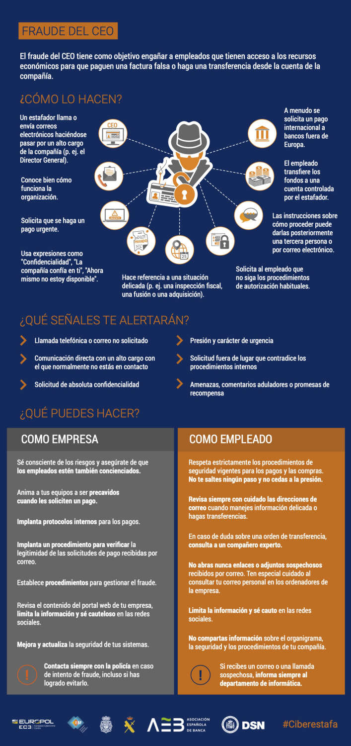 El método utilizado por los detenidos es el denominado “fraude al CEO” o “estafa BEC” –Business Email Compromise. Los atacantes suplantaban la identidadspear-pishing de los directivos de estas empresas, haciéndose con el control de sus cuentas de correo electrónico. Posteriormente, solicitaban falsas transferencias a los bancos con los que estas empresas suelen trabajar. El dinero transferido acababa repartido en cuentas de la organización.